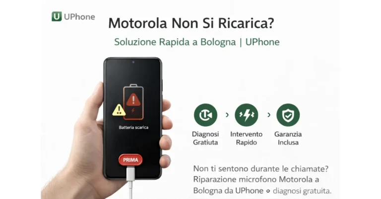 Se il tuo Motorola non si ricarica, nella maggior parte dei casi il problema è batteria o connettore, non la scheda madre. Nel nostro laboratorio Riparazione Cellulare Bologna UPhone identifichiamo subito la causa con una diagnosi chiara e veloce.
